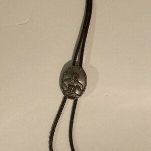 Vintage 1987 Metal Bolo Tie, Nice Cowboy End of the Trail Design, Hatchets, Nice Design, 1 3/4" x 1 1/4", Nice Design, Quality, Heavy Duty, Made in USA, Country & Western, Cowboy, Western Wear, Horse, Apparel, Accessory, Tie, Nice Quality Fashion.