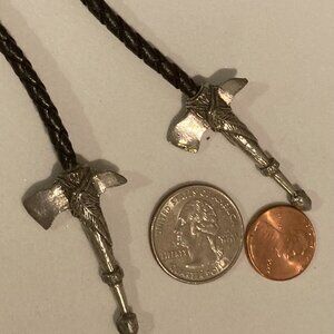 Vintage 1987 Metal Bolo Tie, Nice Cowboy End of the Trail Design, Hatchets, Nice