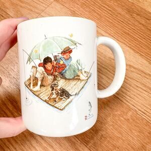 Vintage 1987 Norman Rockwell Coffee Mug Fishermans Paradise Collectible