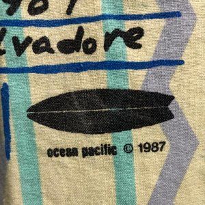 super fun and retro button down. does not say a size but i would say mens l-xl. great condition, no stairs, tears and all buttons are present.