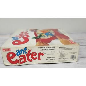 Get ready for some nostalgic fun with this vintage 1987 Tolmer Hoyle Ant Eater Game! This classic game is perfect for family game nights or collectors of vintage toys and games. Despite some box damage, including a small crack on the edge, the game itself is in great condition and ready for hours of entertainment. See pictures for details on the box condition. Don't miss out on the chance to own a piece of gaming history! Happy gaming!