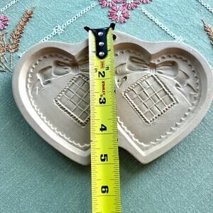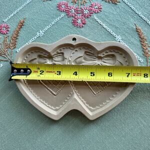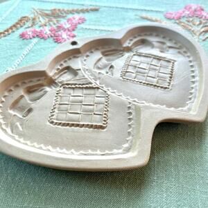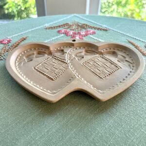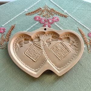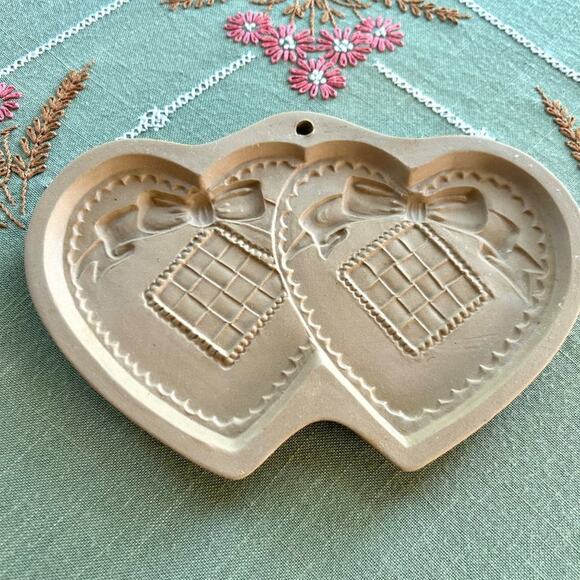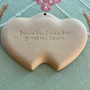 Vintage 1988 Brown Bag Cookie Art Double Heart Shaped Ceramic Shortbread Mold