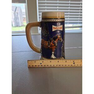 Celebrate your love for Budweiser with this vintage Anheuser-Busch ceramic stein featuring a detailed Clydesdale horse design. A classic addition to any collection.