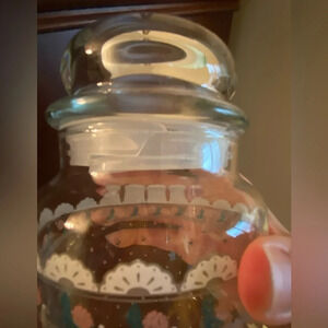 Vintage 1988 CHD Anchor Hocking Country Cat Glass Jar Canister Kitty Rose Lace