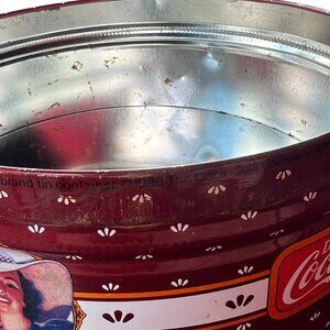 This vintage 1988 Coca-Cola tin features a Victorian lady design with a red Bristol round hat. Made in the USA, this original piece of advertising memorabilia is a must-have for collectors of Coca-Cola memorabilia. The tin showcases the classic soda theme and vibrant red color associated with Coca-Cola, making it a unique and nostalgic addition to any collection.