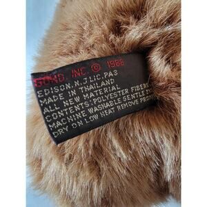 Soft brown plush with stitched nose and smile. Original sewn-in tag intact.