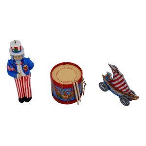 Vintage 1988 Hallmark Christmas Ornament Uncle Sam Tin Sailing Boat Drum New