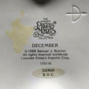Vintage 1988 Precious Moments December 110116 Porcelain Figurine Enesco. This figure is part of a series of the months of the year. No chips, cracks or crazing. I do not have the original box for this one.