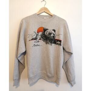 Vintage 1988 Sutton's Montana Bear Moose Elk Crewneck Sweatshirt Heather Gray