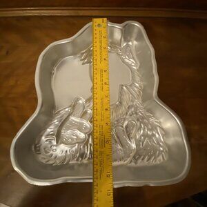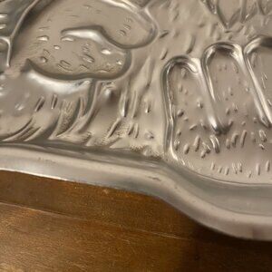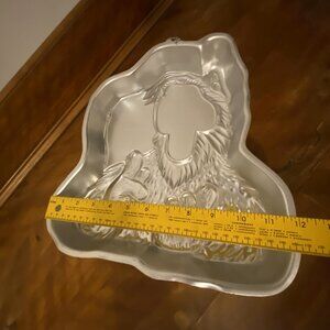 Please note that due to the vintage nature of this cake pan, it does have some wear-scratches/marks. Please see photos as they are part of the description. There is a tiny dent in the second photo. Someone also marked it on two spots with sharpie. The first spot is on the front but is very faded now. The second marking is on the backside at the very top edge.