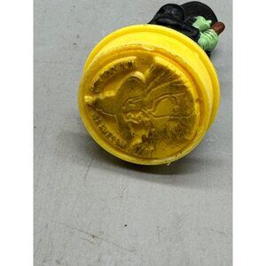 Minor paint wear on yellow base and edges. Height = 2.5 inches.