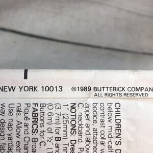 Vintage 1989 Butterick Sewing Pattern 3261 Girl's Dresses Size 5-6-6X. Uncut and factory folded. Instruction page(s) included. From a non-smoking home.