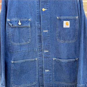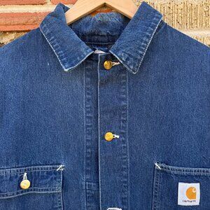Vintage 1989 CARHARTT Denim Chore Jacket USA Made size L (flaw-hole)