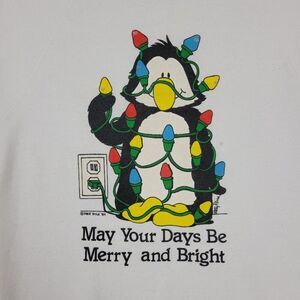 Vintage 1989 Christmas Sweatshirt Adult Medium White Tacky Penguins 80s Distress