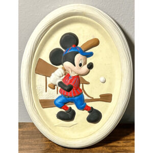 Vintage 1989 Disney Mickey Mouse Baseball Ceramic Wall Plaque Wall Art Kids.