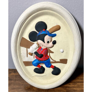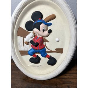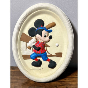 Vintage 1989 Disney Mickey Mouse Baseball Ceramic Wall Plaque Wall Art Kids