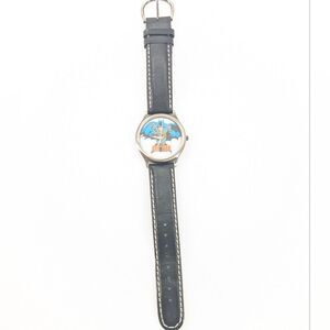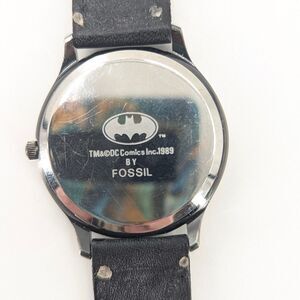 Vintage 1989 Fossil Batman Silver Black Leather Watch