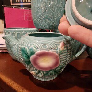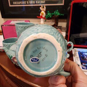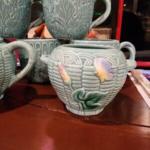 Charming vintage 1989 Haldon Group tea set made in Japan. Features a gorgeous basketweave design with embossed florals and butterflies in soft pastel colors.