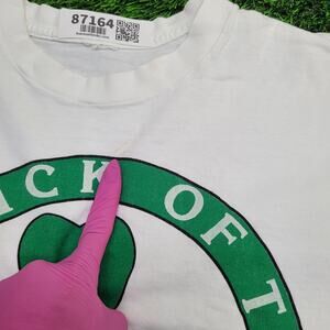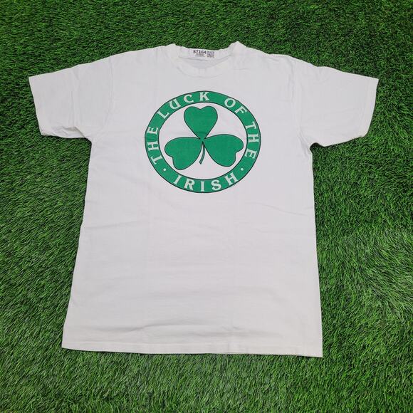 Celebrate Irish pride in this rare 1989 shamrock tee with bold green print a perfect vintage St Patricks staple.