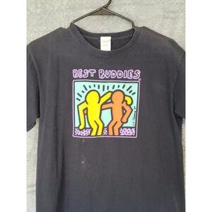 Vintage 1989 Keith Haring Best Buddies Art T-shirt Youth L Black Short Sleeve Su