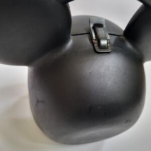 Vintage Disney Mickey Mouse Head Lunch Box by Aladdin. This is in fair condition for its age- still a nice collection piece, but clasp does show some rusting as well as scratches through the piece in the back. It looks like there is residue from a sticker above the right eye. Otherwise, looks pretty great.
