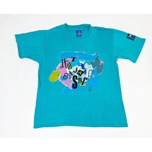 Vintage 1989 Ocean Pacific Shirt Large Green Blue Beach Surf Skate Single Stitch