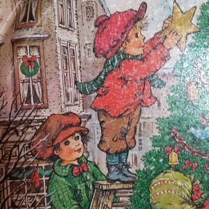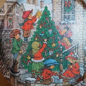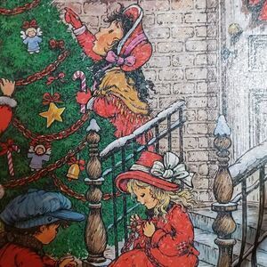 Vintage 1989 Potpourri Press Christmas Tray Metal Victorian Children Tree 13.5"