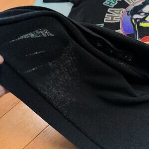 • Preowned, so casual wear is expected. Fading, wear on the graphic, a minor repair near the sleeve. Overall good condition for its age.