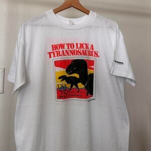 Vintage 1989 Tyrannosaurus USPS Stamp Shirt. The shirt is in good condition, no howls or stains