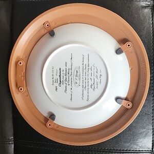 This beautiful plate, The Chrysanthemums, is the fifth issue in the Flowers of Your Garden Collection by Vieonne Morley. The plate highlights a gorgeous bouquet of Chrysanthemums in a vase on a table. The flower is commonly seen in many bouquets of celebration as the meaning of the flower is of long life and rebirth. The plate is preowned and in excellent condition. It is approximately 8.5 inches in diameter and is made of fine porcelain. The plastic plate frame is included with the purchase of the plate. This product is not intended for eating purposes.