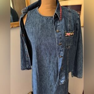 Vintage 1990/ 2000s Denim Embroidered Dress and Jean Jacket