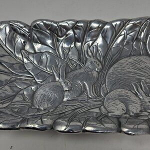 Vintage 1990 Arthur Court Bunny Rabbit Rectangle Sandwich Platter Tray Aluminum