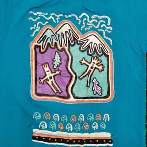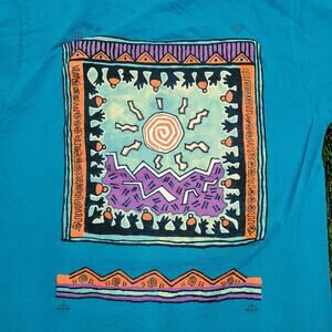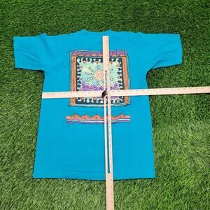 1990 Aztec art shirt, Vintage Native American inspired tee, Retro southwestern sunset graphic, Classic tribal print shirt, Medium 90s western fashion, Old school desert style tee, Rare collectible art shirt, Soft vintage nature graphic, Timeless Native-inspired wear, Unique southwestern aesthetic tee