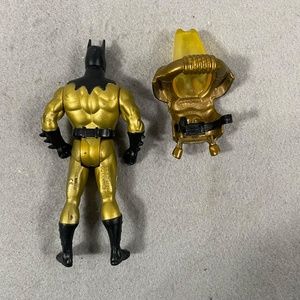 Vintage 1990 Batman DC Comic Kenner Gold Suit Action Figure W/ Helmet Preowned condition. May have light wear from use. See photos for details.