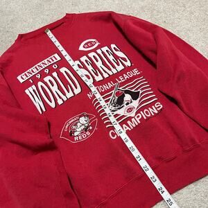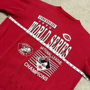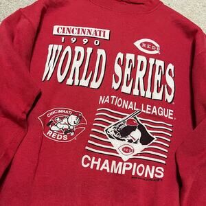 Vintage 1990 Cincinnati Reds World Series Champs Graphic Red Crewneck Large