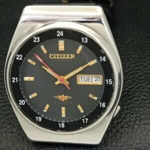 This watch has a stainless steel case in great condition with almost no flaws. The face features Gold accents on a Black Face giving an awesome vintage look overall. It also has a date function!
