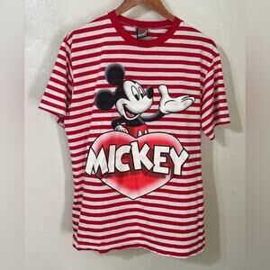 Vintage 1990 Disney Unlimited Mickey Jerry Leigh Striped T-Shirt Adult Large USA
