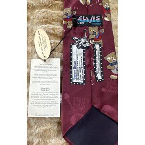 Vintage (1990) Elvis Presley Collection Teddy Bear Tie Burgundy, NWT, 100% Silk
