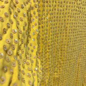 Vintage 1990 Gene Ewing Yellow Sequin Short Sleeve Top Removable Shoulder Pads