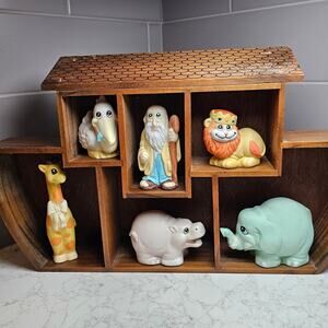 Vintage 1990 HOL House of Lloyd Noah’s Ark 6 Ceramic Figures w/ Wooden Ark BOX
