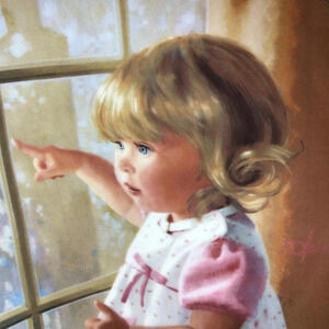 Vintage 1990 “It’s Grandma and Grandpa” collector’s plate by artist Donald Zolan. This plate is numbered on the back. The plate depicts a little girl pointing while looking out the window. This piece measures approximately 7 1/2” in diameter. Great vintage condition. No chips or cracks. Smoke free home.