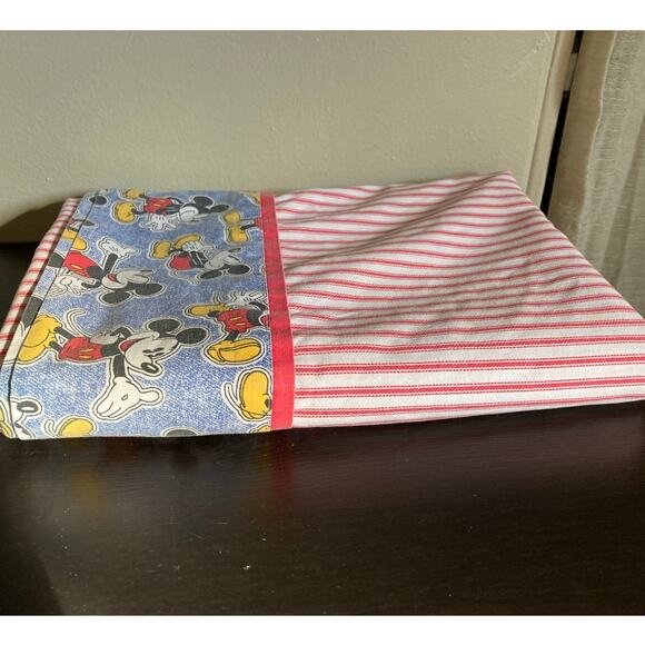Vintage 1990 Mickey Mouse twin flat sheet - red ticking stripes