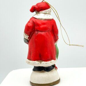 This vintage Santa Claus figurine ornament exudes nostalgic charm with its classic design and meticulous detailing. Made in Korea in 1990, it beautifully captures the essence of a bygone era, adding a touch of festive history to your holiday decor.