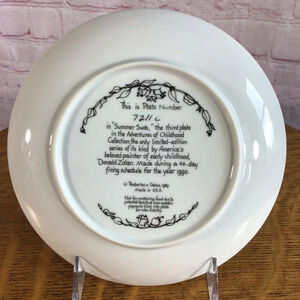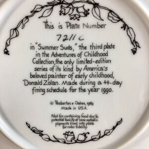 Vintage 1990 “Summer Suds” collector’s plate by artist Donald Zolan. This plate is the third plate in the Adventures of Childhood Collection. This piece measures approximately 7 1/2” in diameter. Great vintage condition. No chips or cracks. Smoke free home.