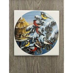Vintage 1990 Wall Tile Trivet Winter Birds Christmas Artist Erik Forsman