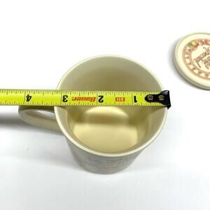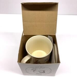 Mug 1 of 6 in the Country Kids Series. Ceramic coffee mug & coaster set. No chips, there are small areas of discoloration on the underside of the coaster and mug. The box has wear and staining.