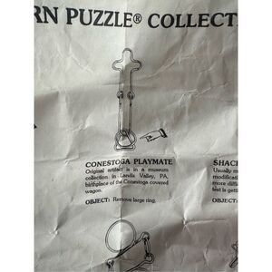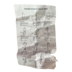 Your TAVERN PUZZLE is a reproduction of a type of puzzle traditionally forged by blacksmiths to amuse their friends at country taverns and inns. Keeping with tradition, a museum-trained blacksmith from Long Island has reproduced some of these antique designs as well as his own original designs. All the puzzles are handmade, making each one a little ditterent, and all of them unique.