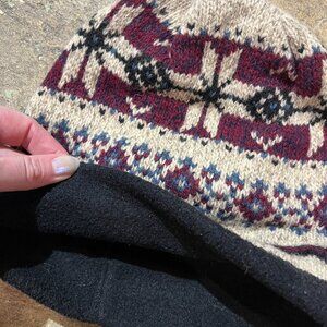 Vintage 1990-era Fair-Isle Lined Knit Cap Beanie Snow Hat Wool