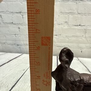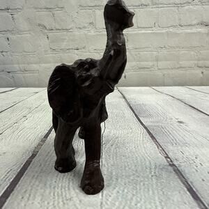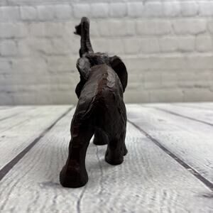 This vintage 1990's 11 ounce elephant brown resin figurine is a charming collectible piece featuring a classic design of a wild animal. The statue is made of resin and measures 6x5 inches, making it a unique and detailed addition to any animal figurine collection. With its old-school charm and elephant subject, this vintage figurine captures the essence of wildlife and nostalgia from the past.