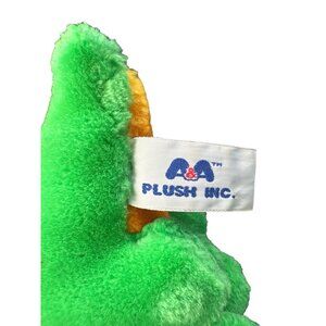 Vintage 1990s A&A Plush Inc. Green & Orange Dinosaur Stuffed Toy